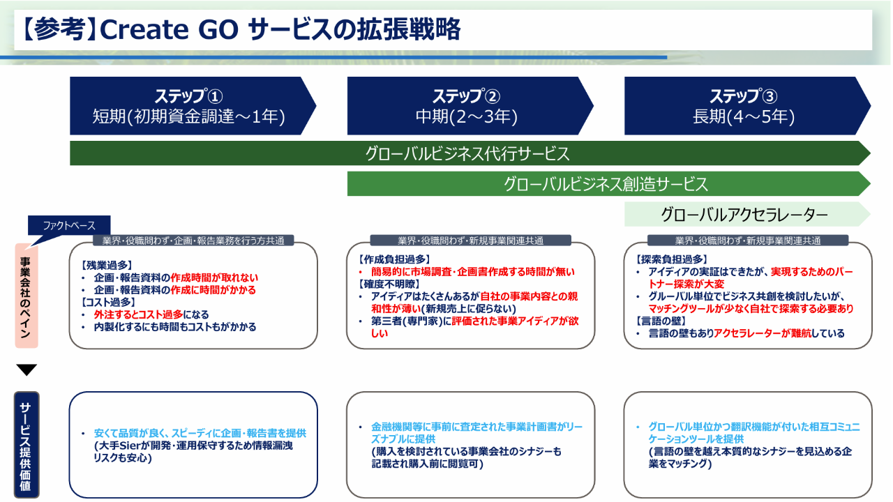 ステップ②:新規事業に特化し、アイディアが無い企業・アイディアはあるが何から取り組んでよいかわからない企業に向けて、仮説ベースではなく、ファクトベースのエンドユーザーからのペインを直接届けることで、新規事業の成功率を上げ、世界を豊かにする。