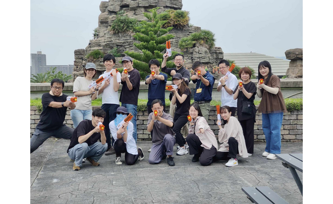 赤サバ®は、研修を通じて個々の能力や性格を顕在化させるコンテンツです。ストレスやプレッシャーがかかる状況では本来の性格が表れます。例えば、専用銃を手にした瞬間、指示を無視して突撃する人、慎重になりすぎて動けなくなる人、冷静に戦略を考え仲間をサポートする人など、チーム戦を通じて行動特性が浮き彫りになります。研修では、こうした行動を客観的に振り返り、自身の強みや改善点を認識する機会を提供。意思決定やリーダーシップのスタイルを明確にし、実務や組織運営に活かせるようになります。