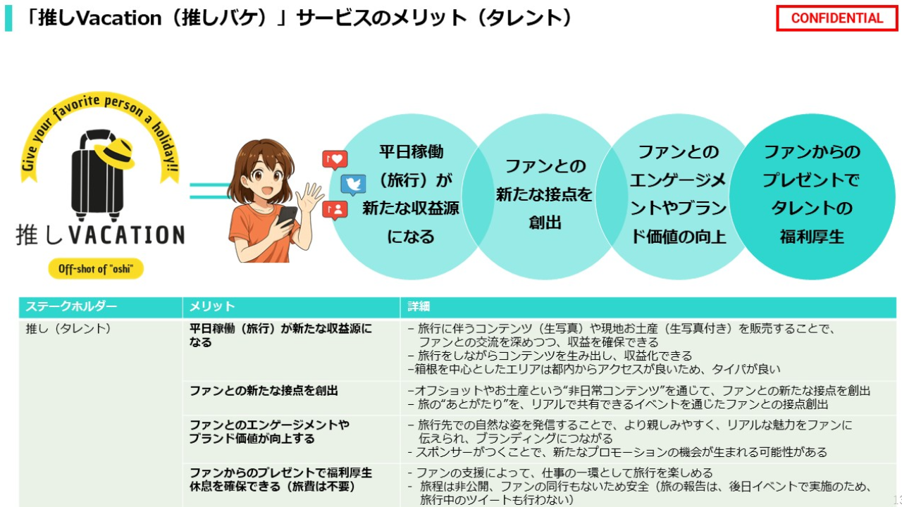 旅先では、観光施設や地元ショップと連携し、推しによる地域PRや現地消費を促進。