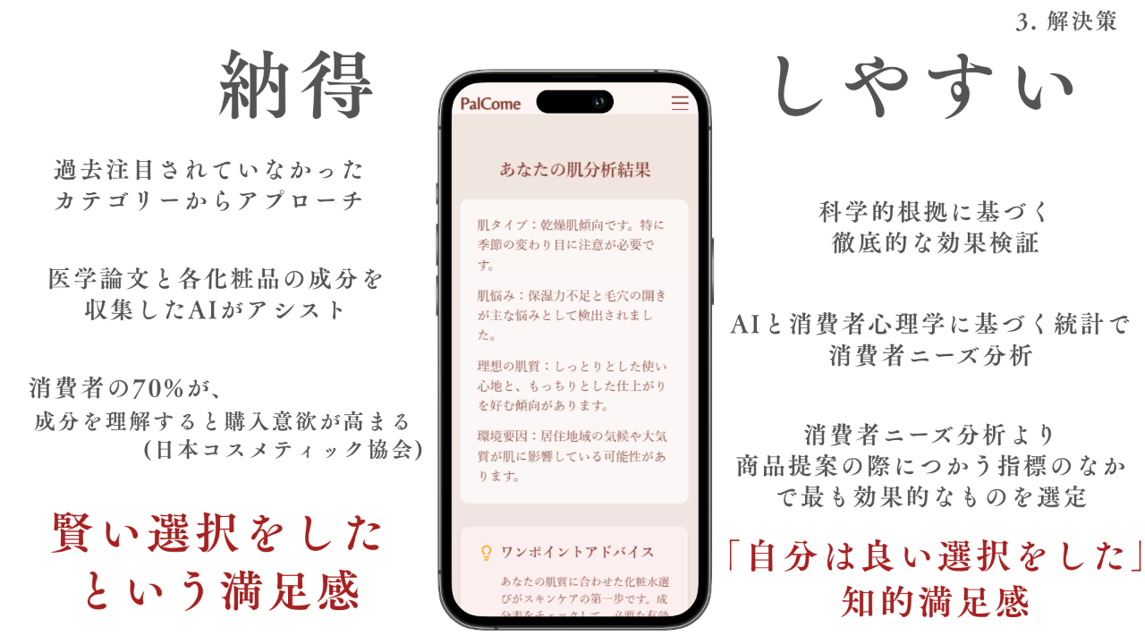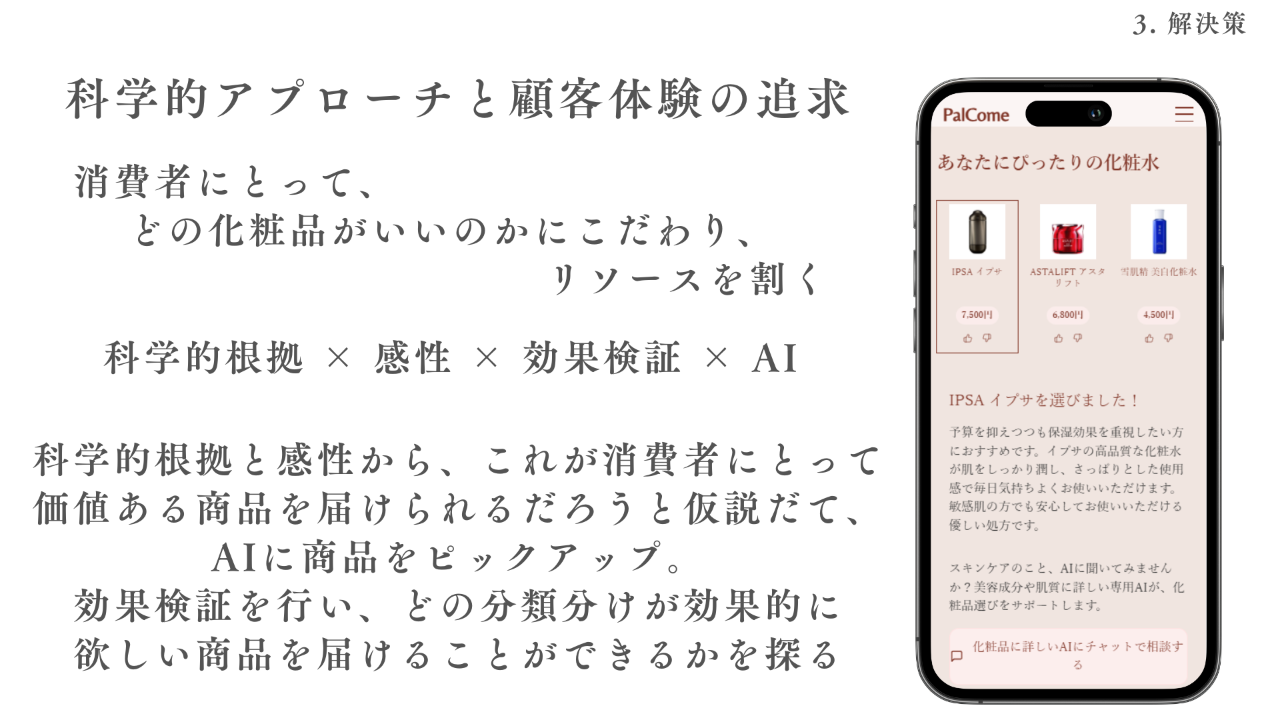 考察を経たうえで、解答を考慮したユーザーに合う化粧品をさらにDeepreseach等で特定