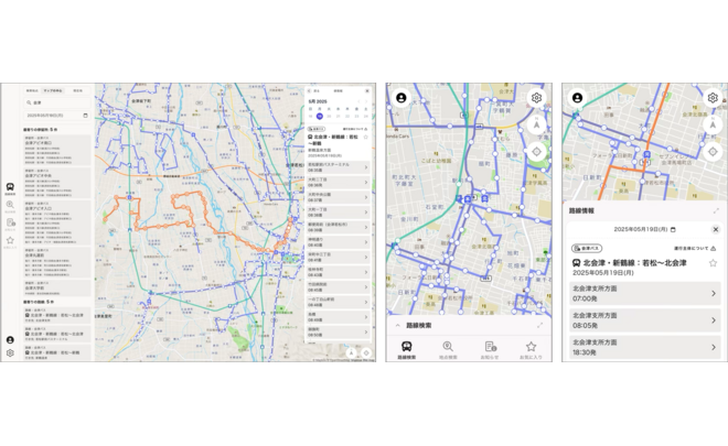 GTFSをベースにエリア内の公共交通網を一元的に可視化・検索可能にします。マップベースのため直感的で土地勘のない観光客にも使いやすく、GoogleMapや公共交通機関が提供するロケーションサービス、各種乗り換え案内サービス等では難しいフラットな情報提供を可能にします。
