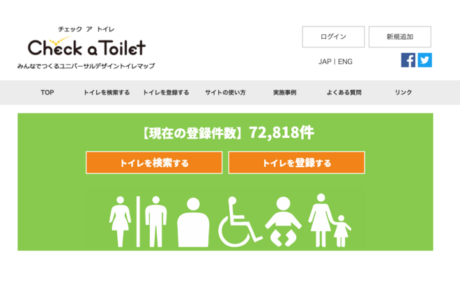 「Check A Toilet (チェック ア トイレット)」とは、自治体・事業者による情報提供や、個人や地域のNPOおよびボランティア団体によるクチコミ情報によって、車いす対応やベビーシート、駐車施設がある「トイレ」、「授乳室がある施設」などの情報を維持・管理していくインターネットプロジェクトです。
