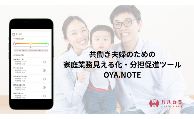 株式会社ハハカラは、共働き家庭が直面する家事育児の負担を軽減し、親としての生活の質を向上させることを目指す企業です。私たちの提供する「OYA.STUDY」は、夫婦間の家事育児分担の必要性やスキルを学ぶプログラムであり、家事や育児の重要性を共に理解し、効率的な分担を実現するための学びの場を提供します。また、「OYA.NOTE」は家事育児のタスク管理ツールとして、夫婦が互いの役割やスケジュールを共有・可視化できる仕組みを提供し、協働をより円滑に進めるサポートを行います。