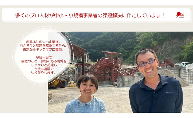 全国の中小・小規模事業者の事業課題をプロ人材を活用し「早く・安く」解決できるコンサルティングサービスです。
