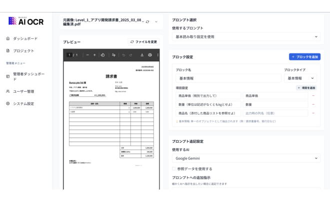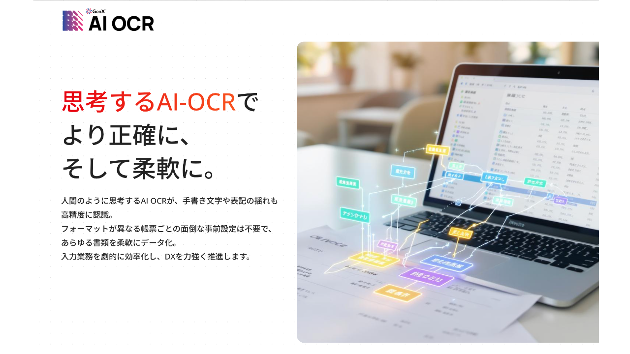 文脈を理解する「思考するOCR」として、従来のOCRでは困難だった複雑な帳票も高精度で文字データ化します。