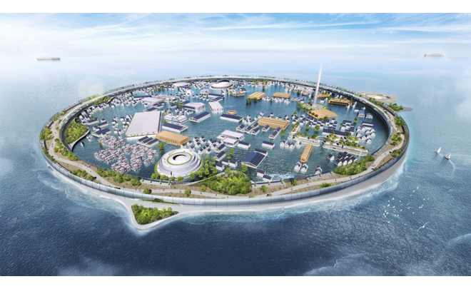 Dogen Cityは、N-Arkによって提案された未来的な浮遊都市のコンセプトで、気候変動に対応し、持続可能な都市として設計されています。最大40,000人の住民を収容できるこの都市は、主に3つの要素で構成されています。まず、自然災害(特に津波)から都市を守るための居住リングがあり、ここでは公共住宅や生活インフラが提供されます。次に、都市の管理やヘルスケアデータ分析、薬品開発シミュレーションを行う海中エッジデータセンターがあり、海水によって冷却され、エネルギー効率の向上に寄与します。そして、自律型浮遊建築は、都市の機能に応じて自由に配置を変更できる柔軟性を持っています。Dogen Cityは特にヘルスケアに重点を置き、テレメディスンやロボット手術、遺伝子解析などの高度な医療サービスを提供します。また、医療観光を推進しており、海水農業や養殖、温泉療法を組み合わせた医療食体験も提供します。環境への対応と未来の都市生活の革新を目指す壮大な取り組みとして注目されています。
