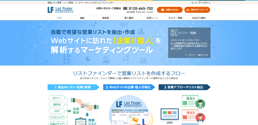 イノベーションでは営業活動の効率化、効果の最大化を目指す企業に、よりリストファインダーを理解していただくためにWebサイトをリニューアルいたしました。