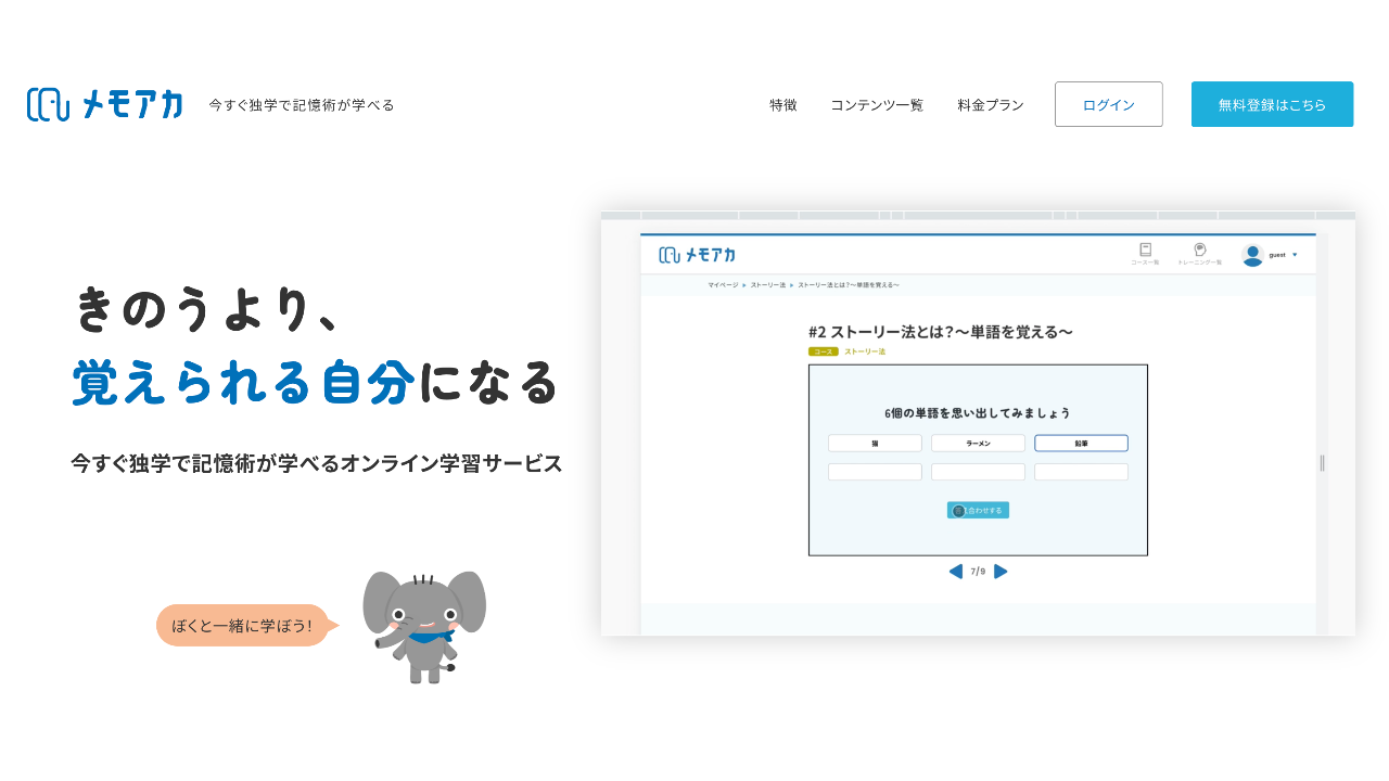 記憶術のオンライン学習サービス メモアカです。いつでもどこでも誰でもパソコンやスマホ1台で、無料からすぐに学習を開始できます。記憶術を身に着けて学習や日常生活、メモリースポーツなどに生かしてみてください!