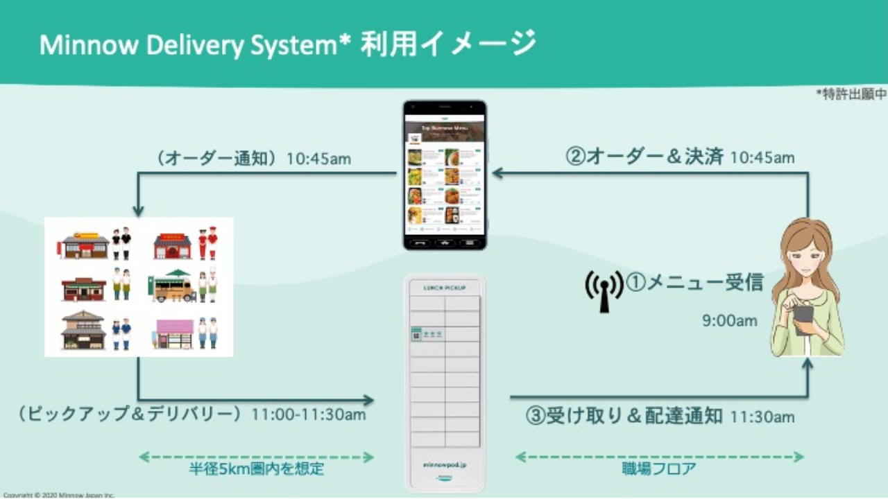 フードデリバリー業界は、コロナウィルスの影響で非接触型の提供が進んでいます。置渡しサービスなども進んでおり、より利便性の高いデリバリーが可能になりつつあります。しかしながら、例えば、オフィスビル、病院、大規模施設などで働く人々は、たとえ"ランチ難民"化することがあっても、配達費用が高くつくデリバリーをランチに利用することはほとんどありません。また、これまでのフードデリバリー業は、飲食店に対する散発的なオーダーやピークタイムへのオーダーの集中を避けることができません。飲食店は、デリバリーへの対応によって、料理の制作や配達関連コストで多大な負荷をかけられています。デリバリー関連費用が粗利の約半分にもなるケースが多く、飲食ビジネスは、デリバリーへの対応によって、破壊される寸前にあるともいえるのです。
