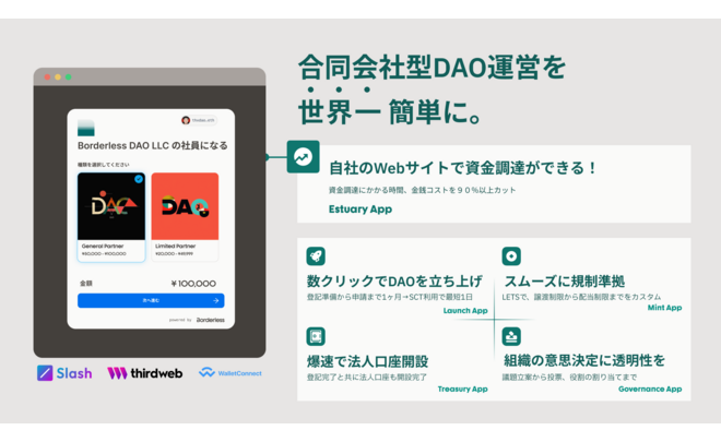 Just DAO Itは、合同会社の資産や権利をトークン化し、会社の壁を超えた共同所有、共同運営を実現するサービスです。 会社の定款、内部規定をアップロードするだけで、総会や持分のスマートコントラクト化を実現します。