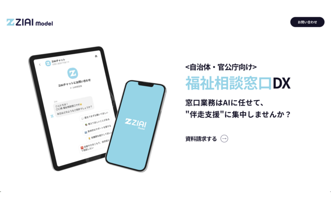 福祉窓口業務の負担を大幅に軽減し、職員が市民の伴走支援に集中できるDXサービスです。当該窓口に寄せられる課題は多岐に亘りますが、問い合わせ窓口における対応は大きく4つ、①傾聴カウンセリング②情報提供・助言③他機関紹介④来訪予約に分けることができます。そしていずれの場合も状況把握のために傾聴カウンセリングを要することが技術的障壁となり、行政DXが進む令和時代にも福祉窓口だけは属人的な運用体制が変わりませんでした。
