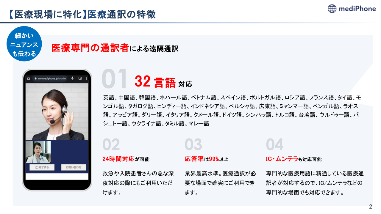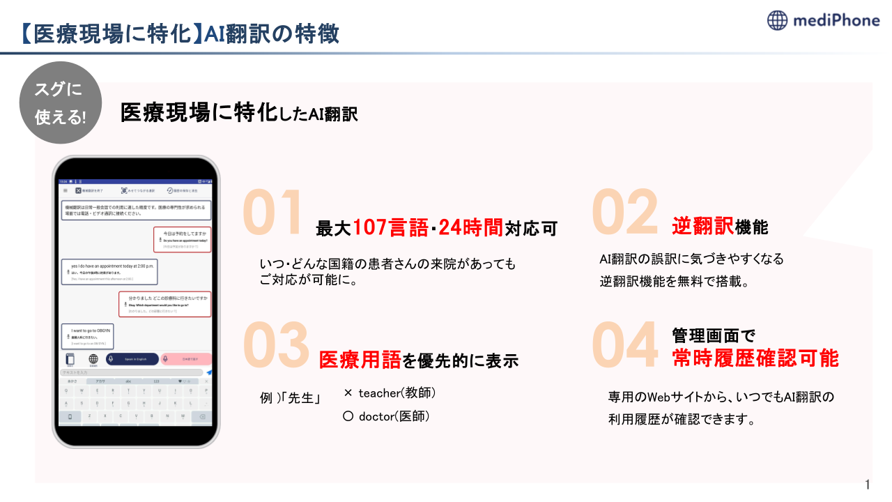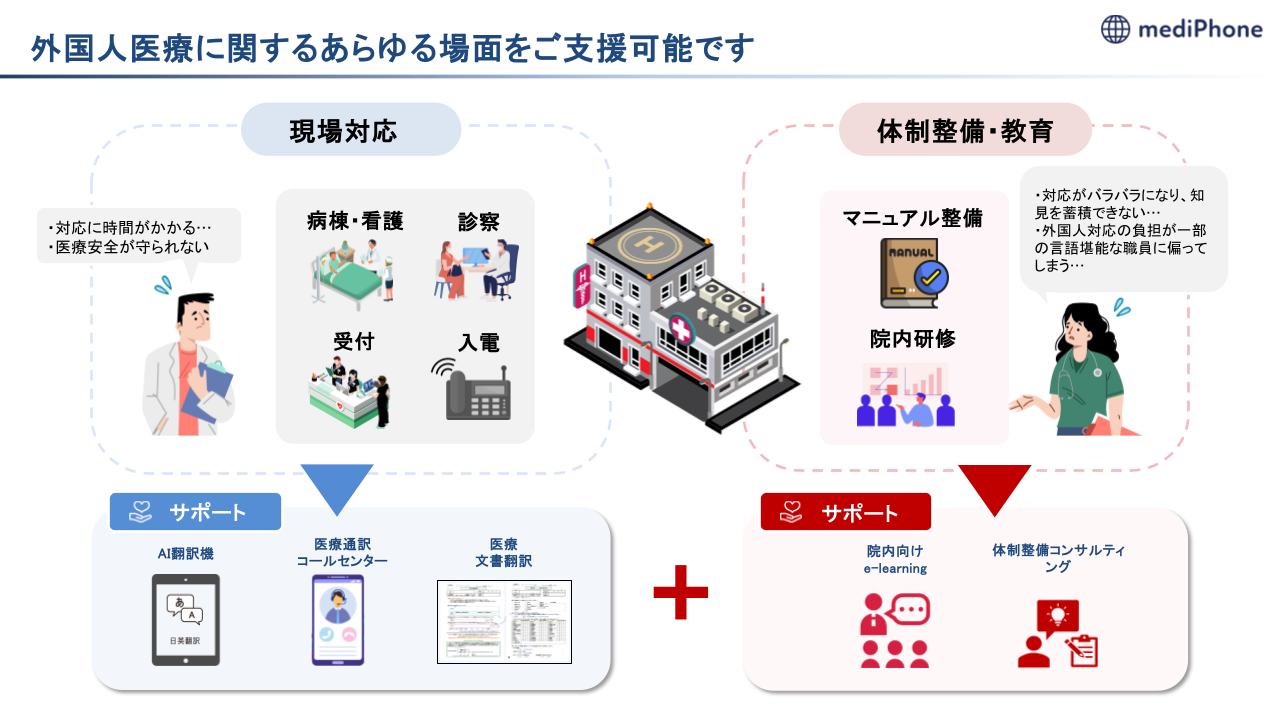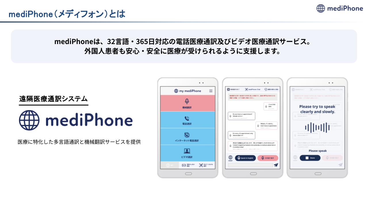 mediPhone(メディフォン)は、「言葉の壁がない安心」を広げ、外国人患者が“いつもの患者さん”として受け入れられる環境をつくることを目指します。