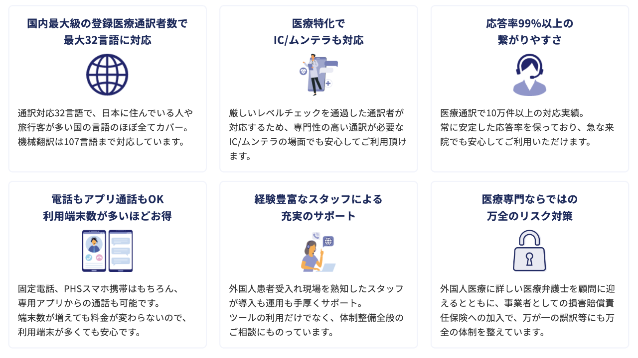 通訳者の採用・育成、録音データを用いたレビュー、IC・ムンテラ対応、賠償責任保険の加入など、プロセス全体で品質を確保しています。