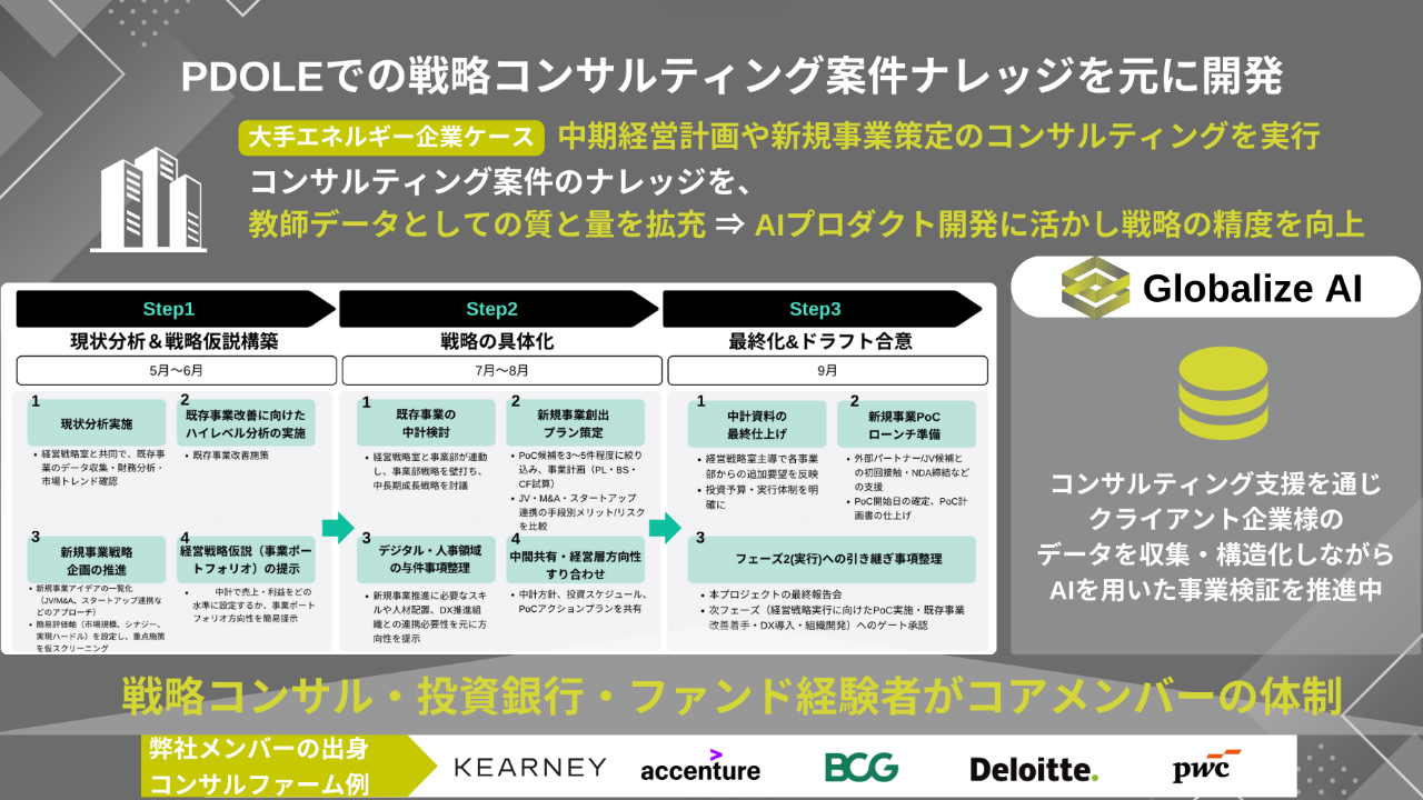 また、戦略・海外展開に強いコンサルタントを確保しており、「人材 × 戦略 × AI」の独自アセットを持っているのが強みです。