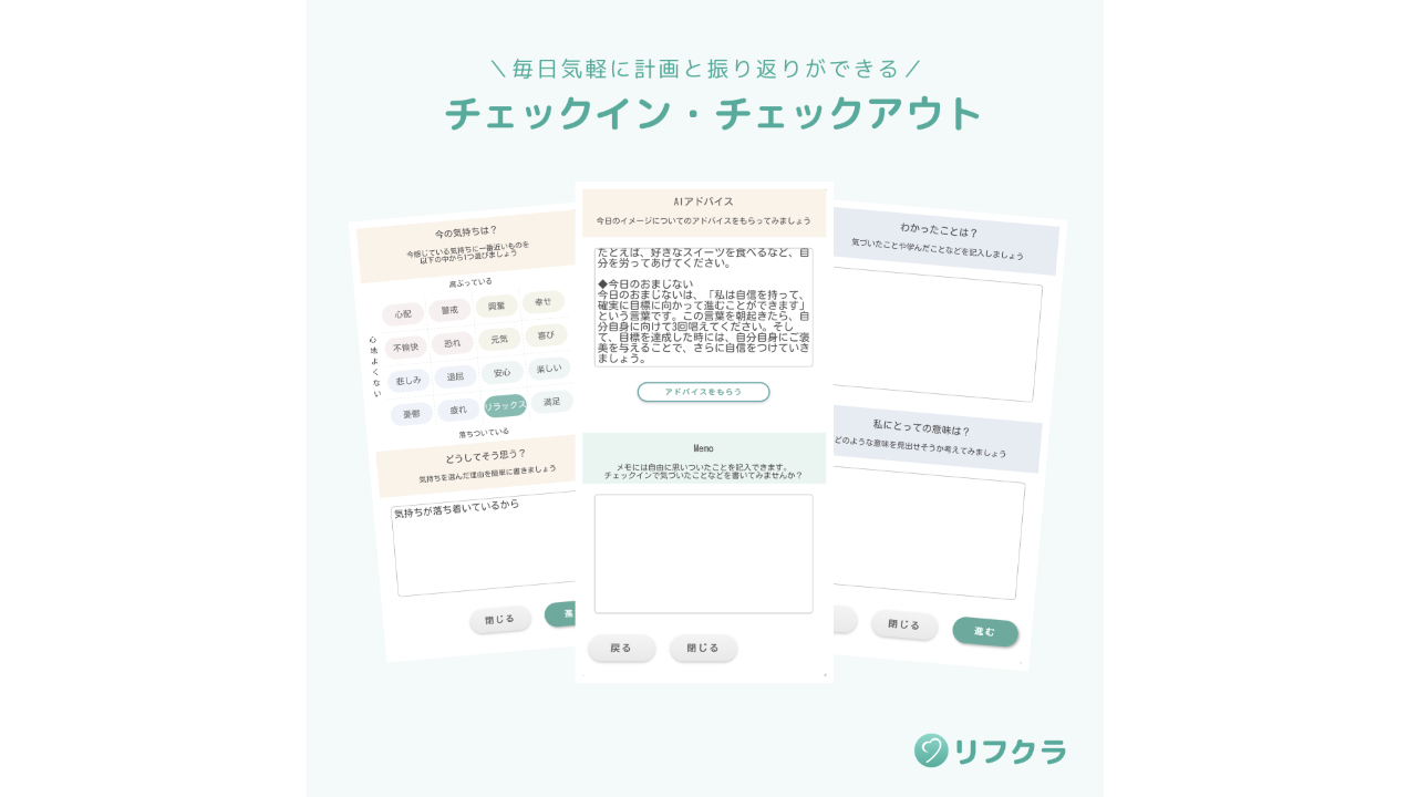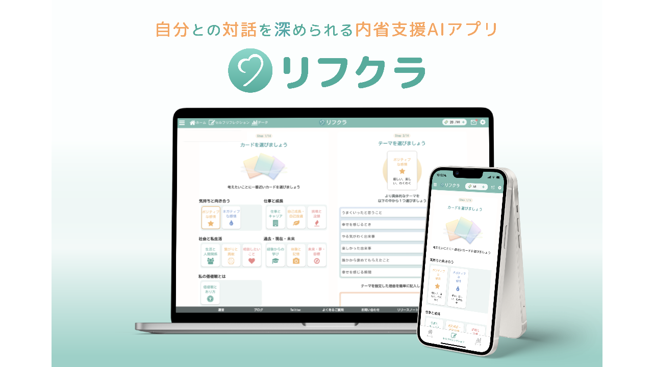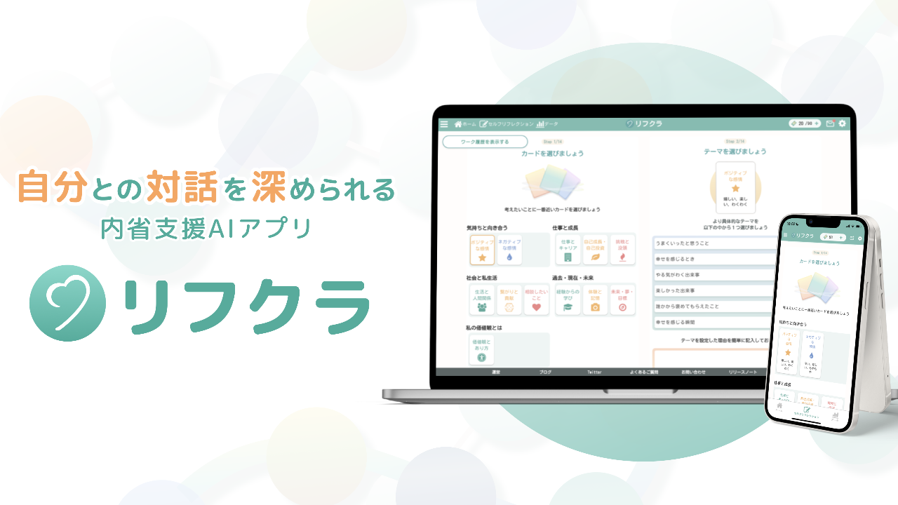 メンタルヘルス問題やキャリア選択課題に対処するAI対話型アプリ「リフクラ」とコンサルティングサービスで、個人や企業に価値を提供しています。
