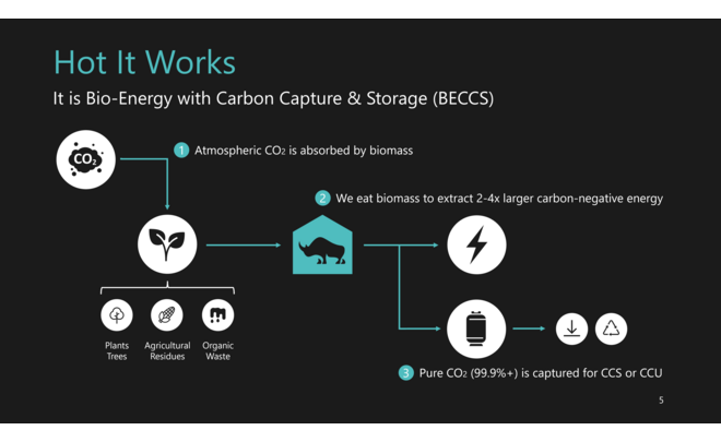 ライノフラックスは、バイオマス資源を従来のように燃やすことなく、水溶液との化学反応を利用することで、クリーンな電力と高純度のCO2として高効率に回収します。私たちの革新的な技術には3点の特長があります。