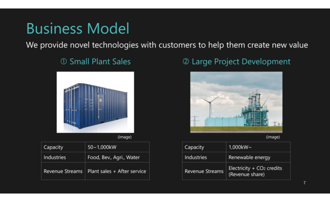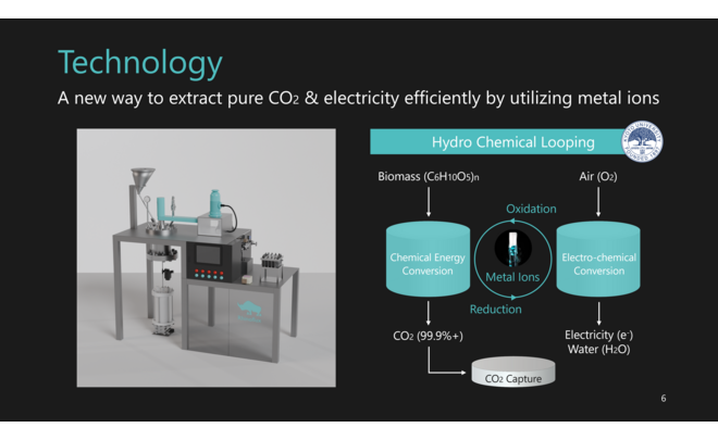 従来のようにバイオマス資源を燃やすことなく、水溶液に含まれる金属イオンの酸化・還元反応を用いることで、クリーンな電力と高純度のCO2を高効率に回収します。
