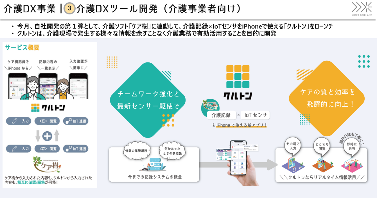 ・介護業務の中においで課題のある領域を特定し、様々なサービスやプロダクト開発を自社で行っていきます。