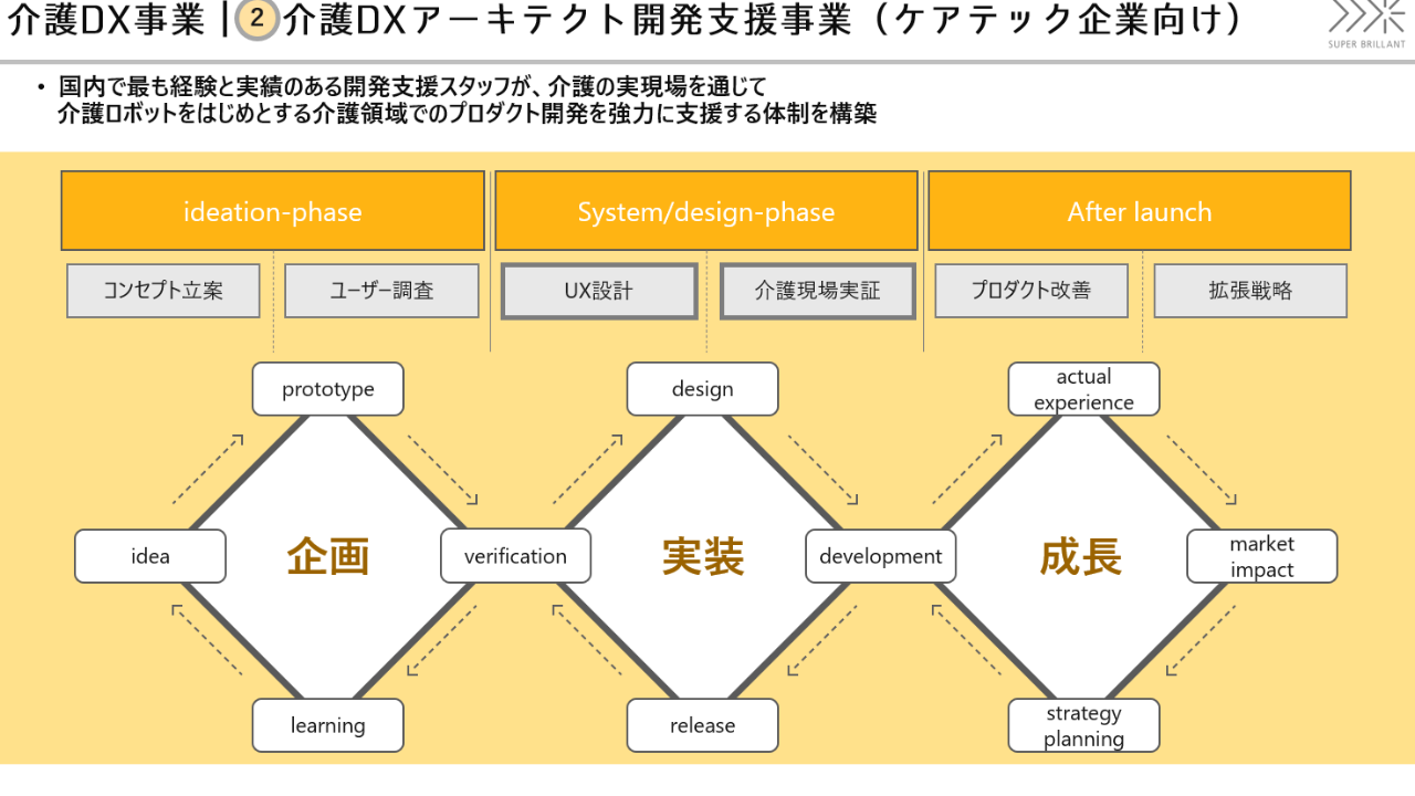 ・ケアテック企業や、新たに介護領域で事業開発するメーカー、ベンチャー向けの事業開発支援になります。