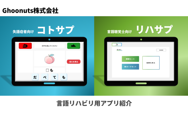 コトサプは、失語症者が自宅で出来る、言語トレーニングアプリです。
