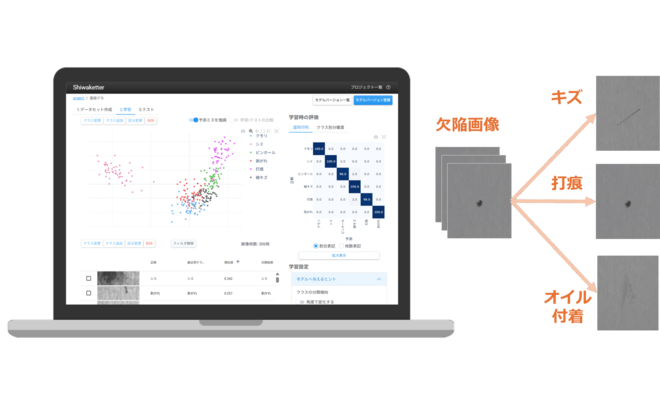 検査機で取得した欠陥画像を「キズ」「ピンホール」「打痕」などの不良モードごとに超高速で自動分類。 さらに欠陥分類だけでなく、品種判別や画像照合にも応用可能です。目視確認の負担を大幅に削減し、品質管理の効率化を実現します。