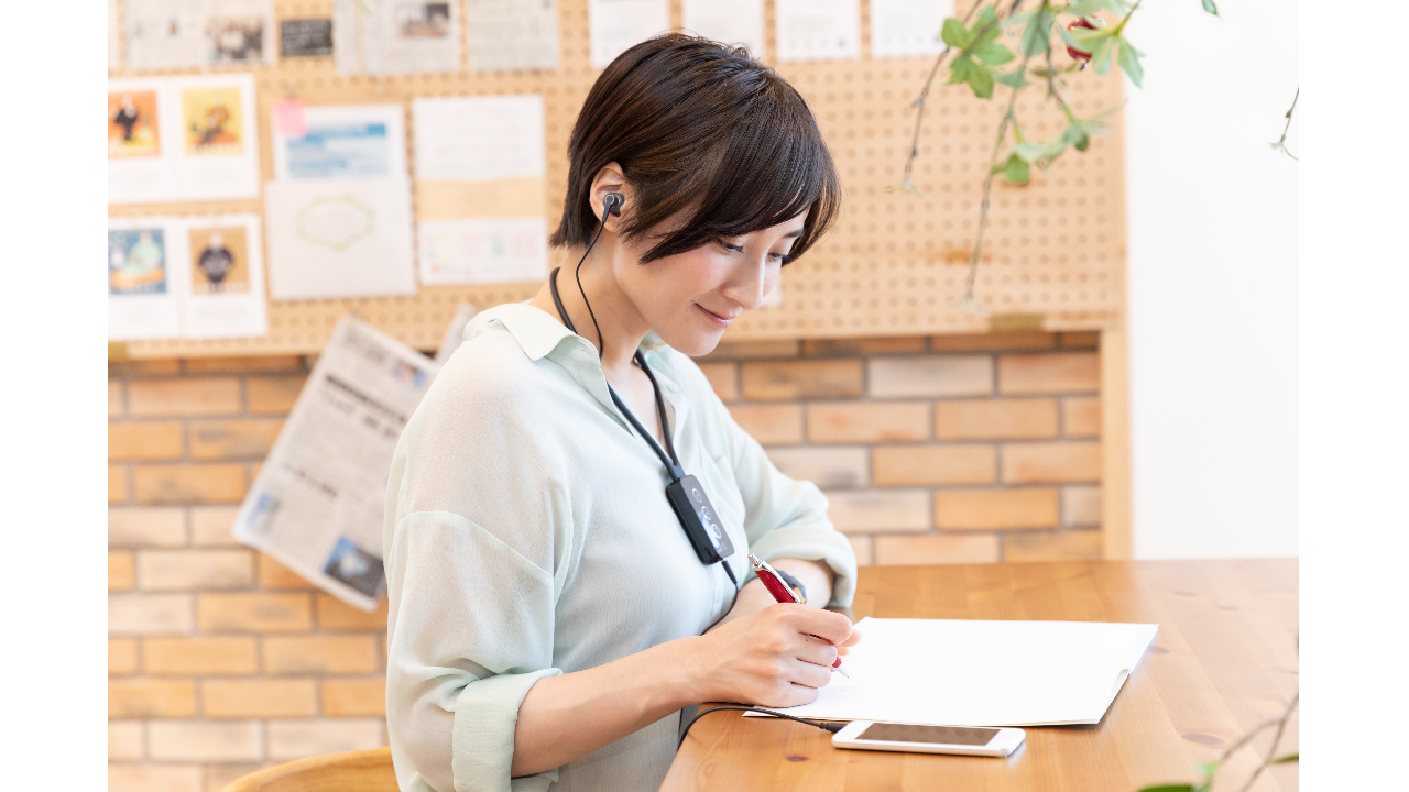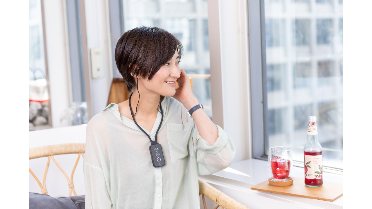 デザインは、落下破損の心配が少ないネックストラップ方式を採用。イヤホンと集音部を一体化することで、装着していても難聴者であるとわからないユニバーサルデザインを実現。また、片耳ごとに音量の調整が可能で操作パネルも非常に使い易く設計しています。