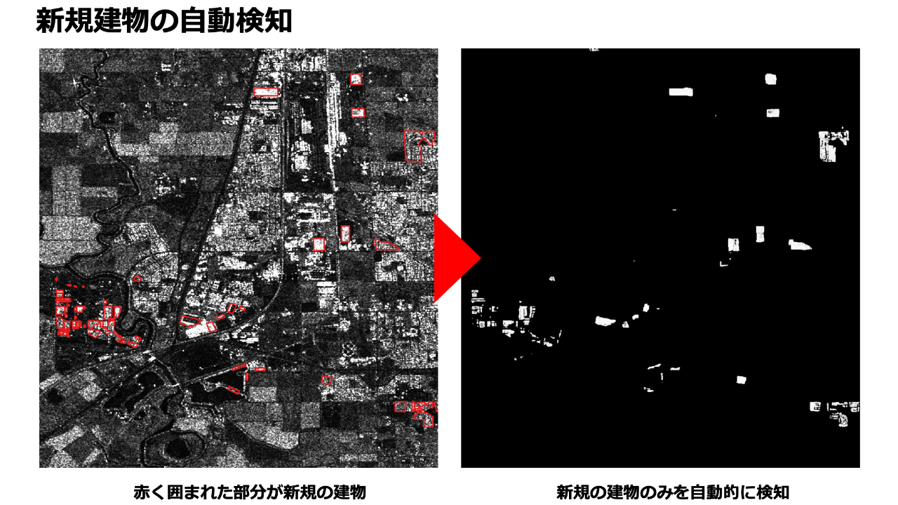 SAR衛星と呼ばれる、レーダーで地表面を観測する衛星データをAIを用いて自動的に解析することで実現しています。AIを開発するために大量の地上データを自社で収集し教師データを作成することで、他社では実現不可能な検知能力を実現しています。また自社衛星にこだわることなく、世界中の衛星データを扱えることで、データの更新頻度や精度を高めています。
