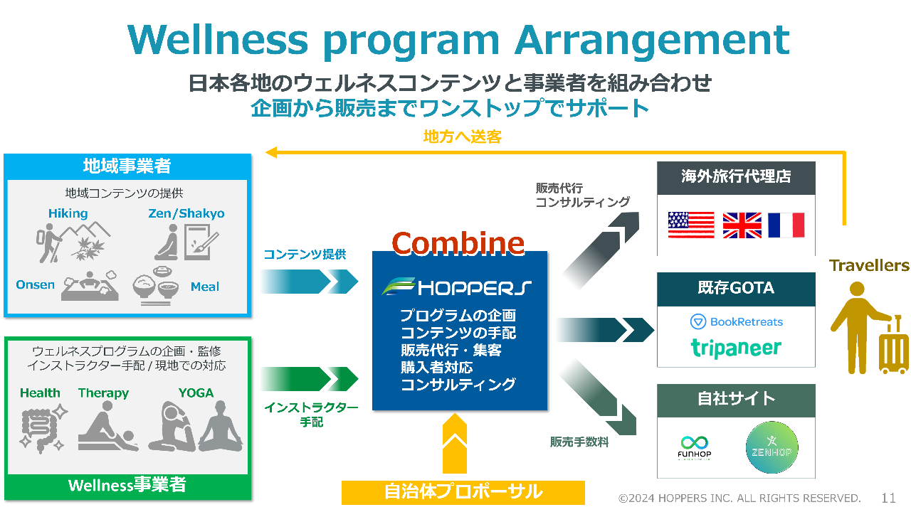 観光資源が乏しい地方に健康や回復を目的とした日本版のウェルネスプログラムで、地方に世界の旅行者を送客することを通じて、経済的な潤いを与えることを目指します。