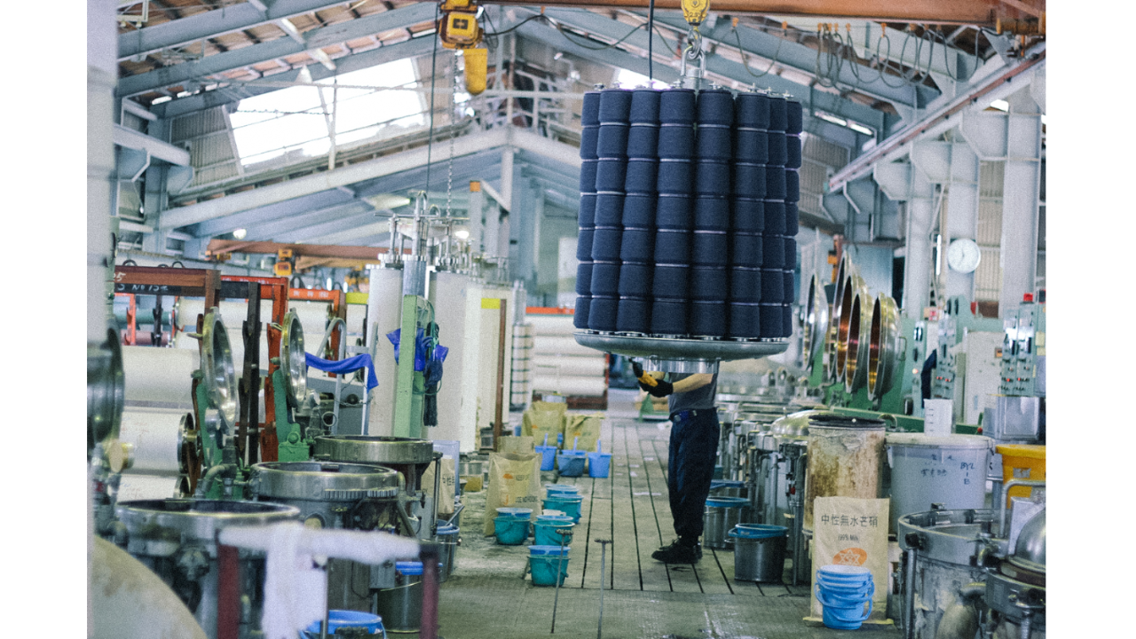 2.デニム専門の染色:ロープ染色で世界一細い糸のデニムを完成させた(特許申請検討中)