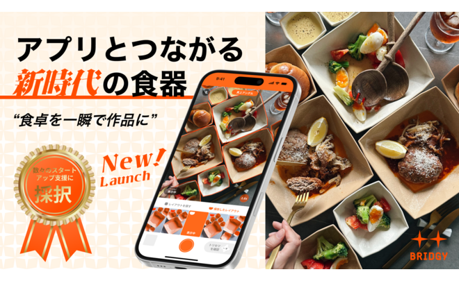 BRIDGYはオリジナルデザインの食器とカメラアプリによって、「誰でも綺麗な写真が撮れる」体験を提供します。将来的にはそのユーザー基盤を活用して、食に関するUGC創出プラットフォームへとスケールさせます。
