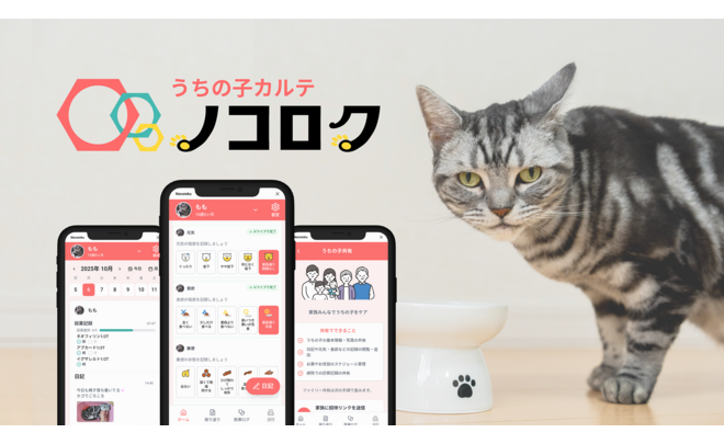 「うちの子カルテ ノコロク」は、愛犬・愛猫の健康状態や治療情報を家族と動物病院で共有できる、ペット版のパーソナルヘルスレコードのアプリです。ペットの家族化と医療の高度化が進む一方、ペットが病気になると、飼い主は看病や通院、医療費への不安に直面します。しかし、飼い主の約8割は自身のペットの病気を正確に理解できておらず、獣医師の約8割もその課題を実感しています(弊社調べ)。患者と会話ができない動物医療において、飼い主の理解不足や記憶の曖昧さは、治療の質低下や不安増大を招きます。