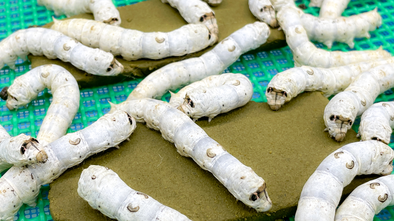 スマート養蚕システム(スマート農業の養蚕版)によるカイコ・繭の製造、たんぱく質原料の抽出・加工より、国産シルクをフードテック、ヘルステック、メディテックへ応用する技術を保有し、シルク関連商品(カイコ、繭、機能性たんぱく質、シルク製品)を提供します。フードテック分野では、賞味期限の延長、食感、味覚を向上させるシルクフィブロインの製造・販売、養殖、養鶏用の機能性飼料の供給、ヘルステック分野では、化粧品、ヘアケア商品用のシルク原料供給、メディテック分野では、バイオマテリアルとしての供給となります。