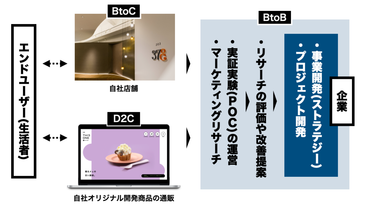 私たちMEETSHOPは、これまでに数多くのBtoCビジネスを運営し、エンドユーザーとの直接的な接点を持ちながら、リアルな市場データと顧客のインサイトを蓄積してきました。その経験を活かし、企業の新規事業開発を支援するBtoB領域においても、より実践的かつスピーディな事業開発が求められていることを実感しました。