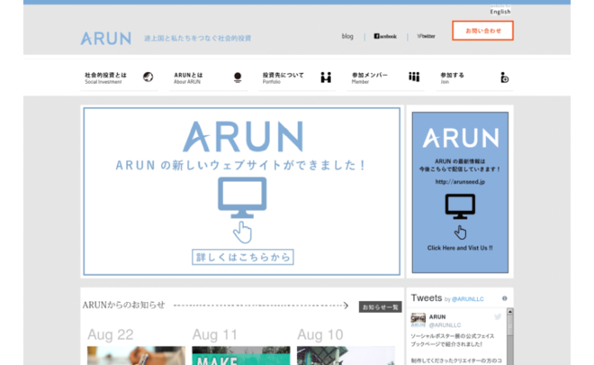 ARUN(アルン)はカンボジアやインドなどアジアのソーシャルビジネス起業家と、投資家をつなぐ活動を行っています。寄付でも援助でもなく、投資による国際貢献です。日本発の社会的投資プラットフォームを構築しています。